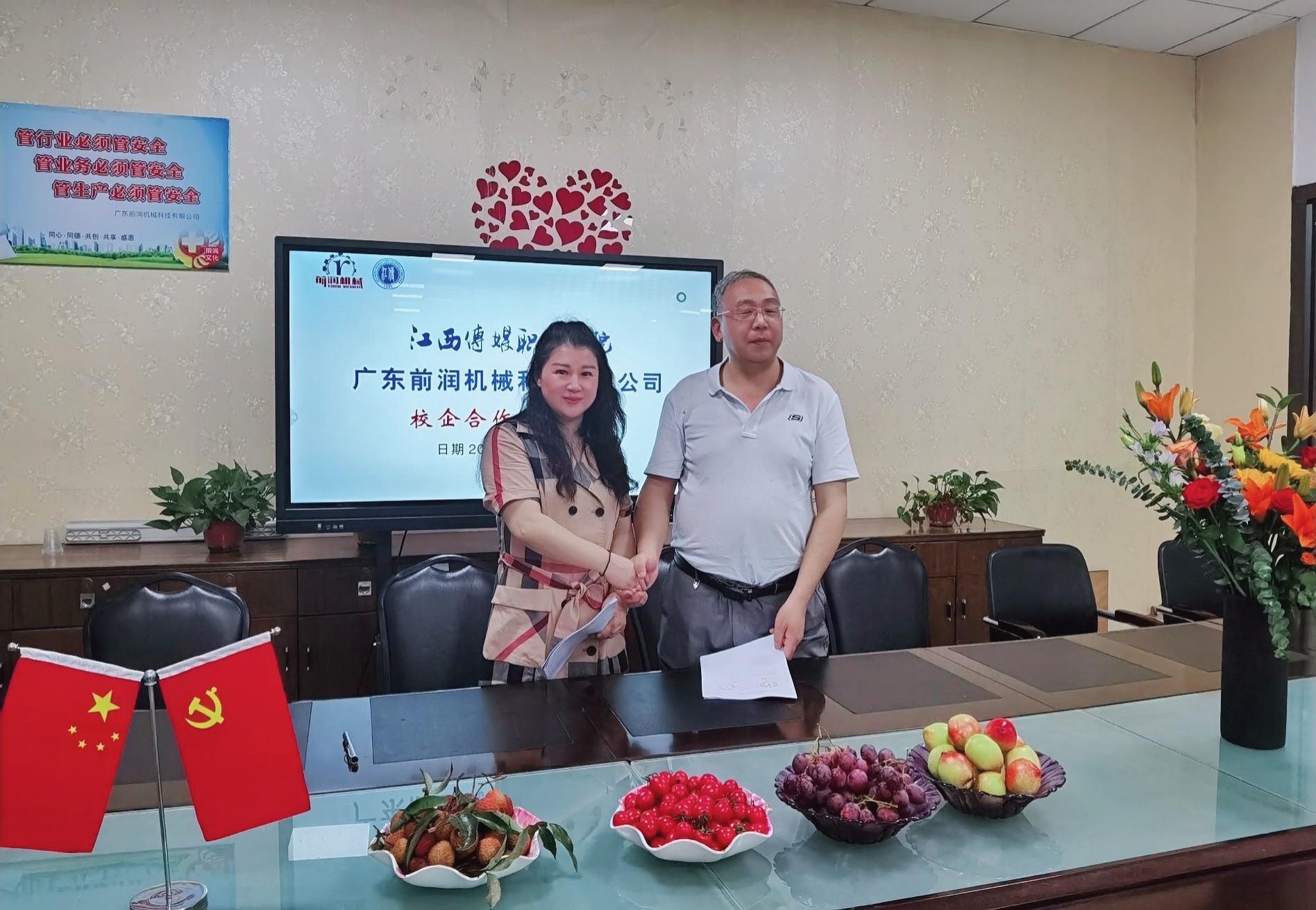 出席此次簽約儀式的嘉賓有廣東前潤機械科技有限公司董事長丁銀球,副總經(jīng)理謝曉,江西傳媒職業(yè)學院領(lǐng)導(章輝院長,王艷副院長,袁順發(fā)印刷系主任)。以及廣東前潤機械科技有限公司全體員工也見證了此次簽約儀式。