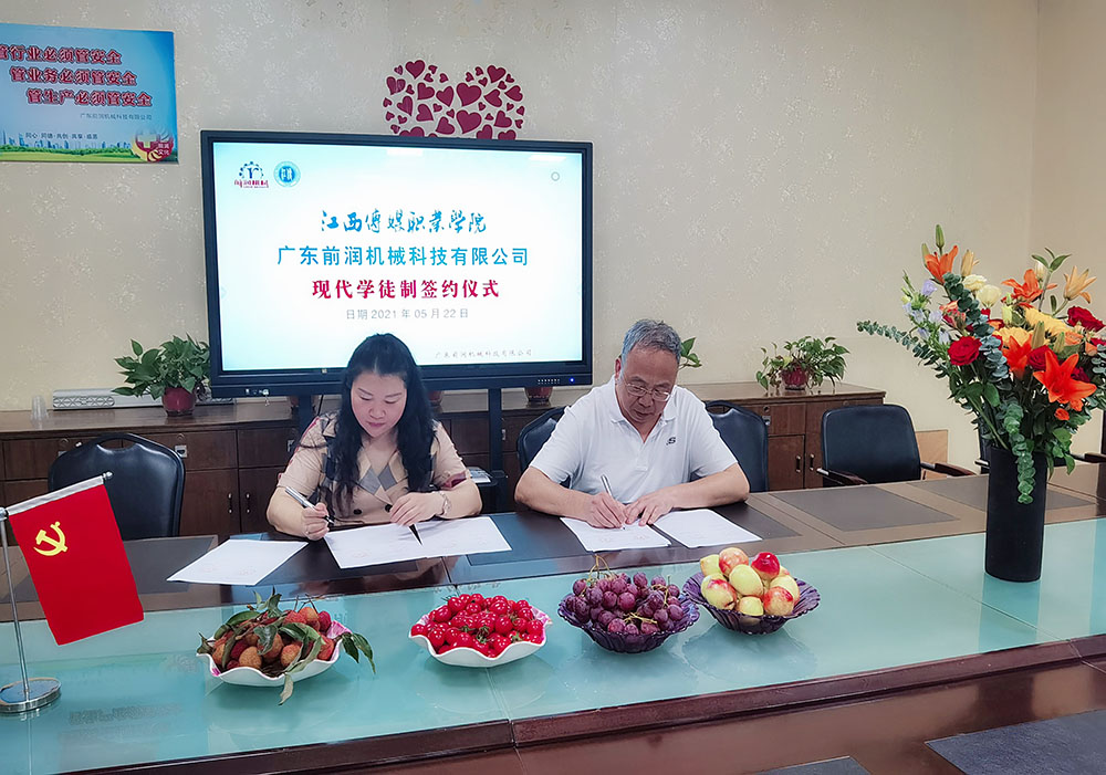 2021年05月22日,江西傳媒職業(yè)學院與廣東前潤機械科技有限公司舉行了校企合作(現(xiàn)代“學徒制”人才培養(yǎng)項目)簽約儀式(廣東前潤機械舉行校企合作簽約儀式)。