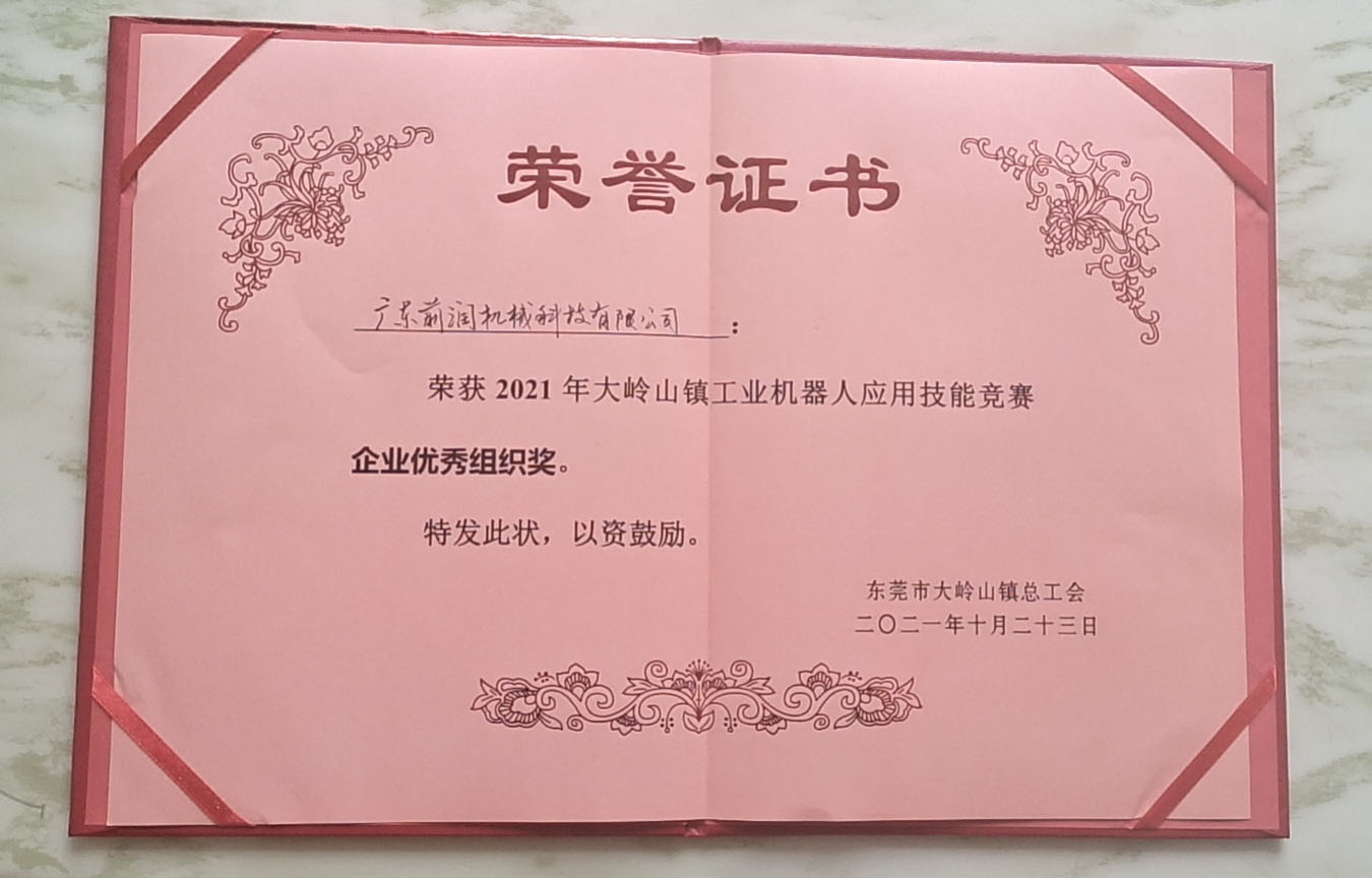 ▍ 廣東前潤機械科技有限公司優秀企業優秀組織獎
